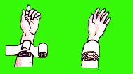 4. Plasser h�ndroten mot trykkpunktet, legg den andre rett p� den f�rste. L�ft fingrene fra brystet. Du skal bare trykke med h�ndroten.