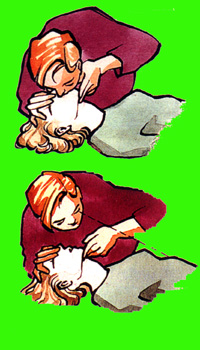 1. Dekk munn og nese med egen munn.2. Bl�s forsiktig.