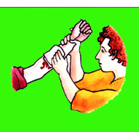 Trykk eller sammenklemming av s�ret hindrer effektiv bl�dning fra sm� s�r etter f� minutter. St�rre gapende og bl�dende s�r skal behandles p� samme m�te og b�r unders�kes av lege.